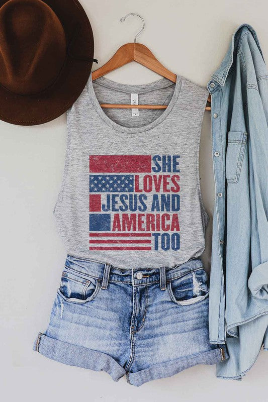 LOVES JESUS AND AMERICA GRAPHIC MUSCLE TANK