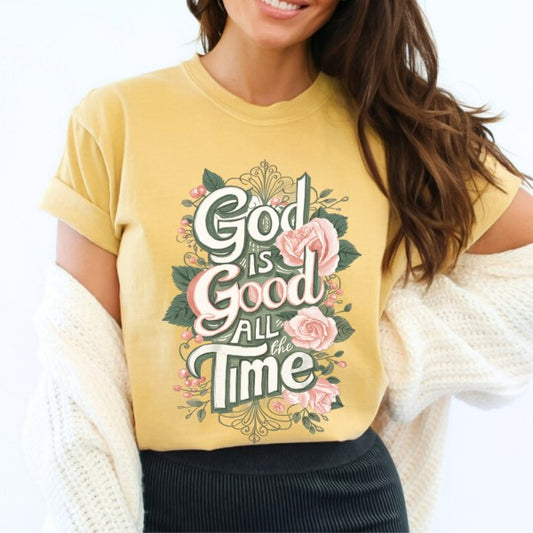 God is Good floral Christian graphic t-shirt